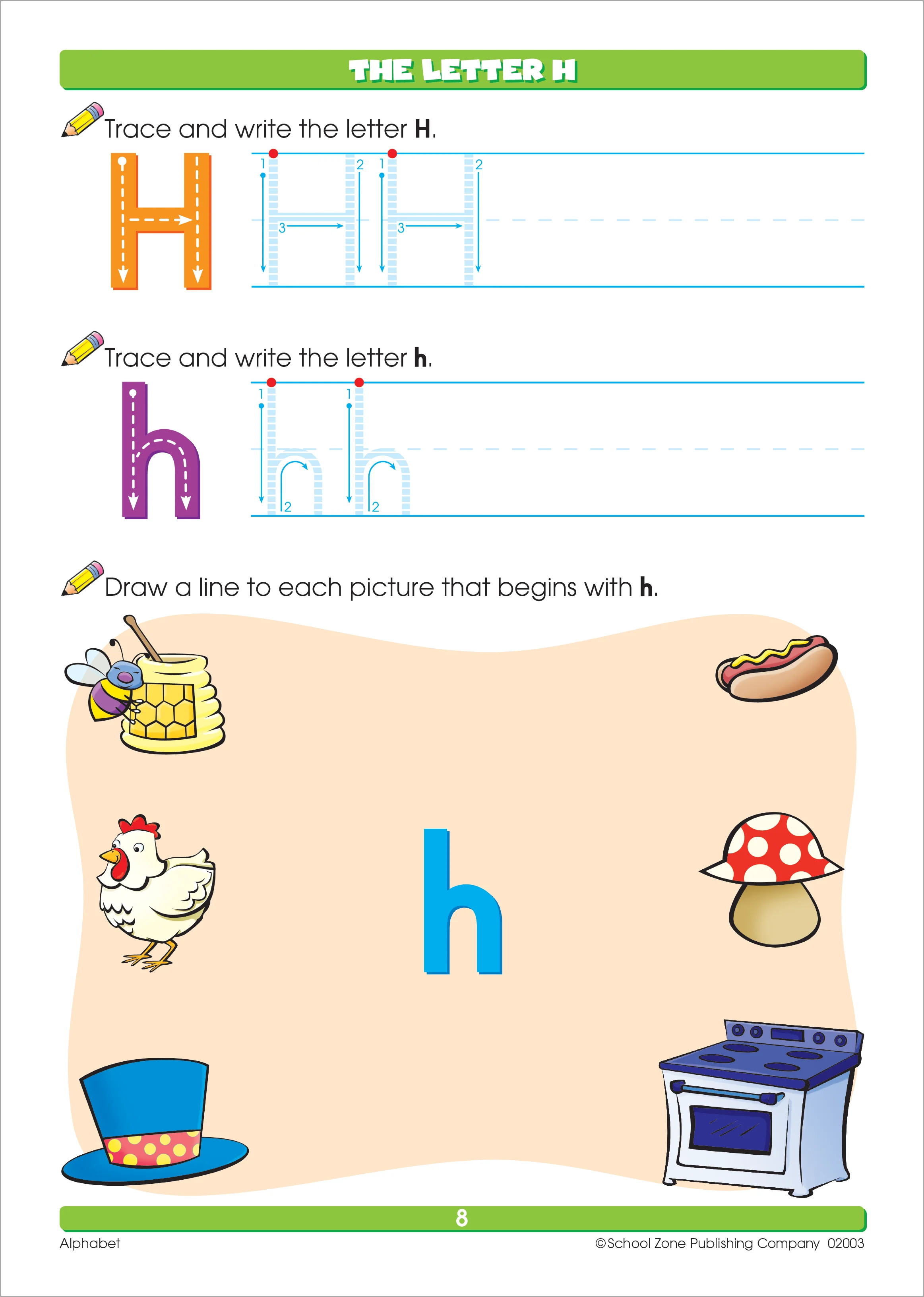 The letter âAâ stands for adventures in learning! The alphabet is an essential first step in learning to read. From everyday to extraordinary, the world of words and ideas starts here. The letter K begins âkey,â but it also stands for koalas sitting in a tree! This workbook will help your child master key reading readiness skills, such as recognizing the letters of the alphabet and identifying the sounds for which the letters stand. In addition, your child will get lots of practice tracing and writing each letter and working with alphabetical order. Tracing and writing entire words helps reinforce letter-word relationships. Finding 6 âbigâ and âlittleâ letters hidden in a picture also develops observation and concentration.
