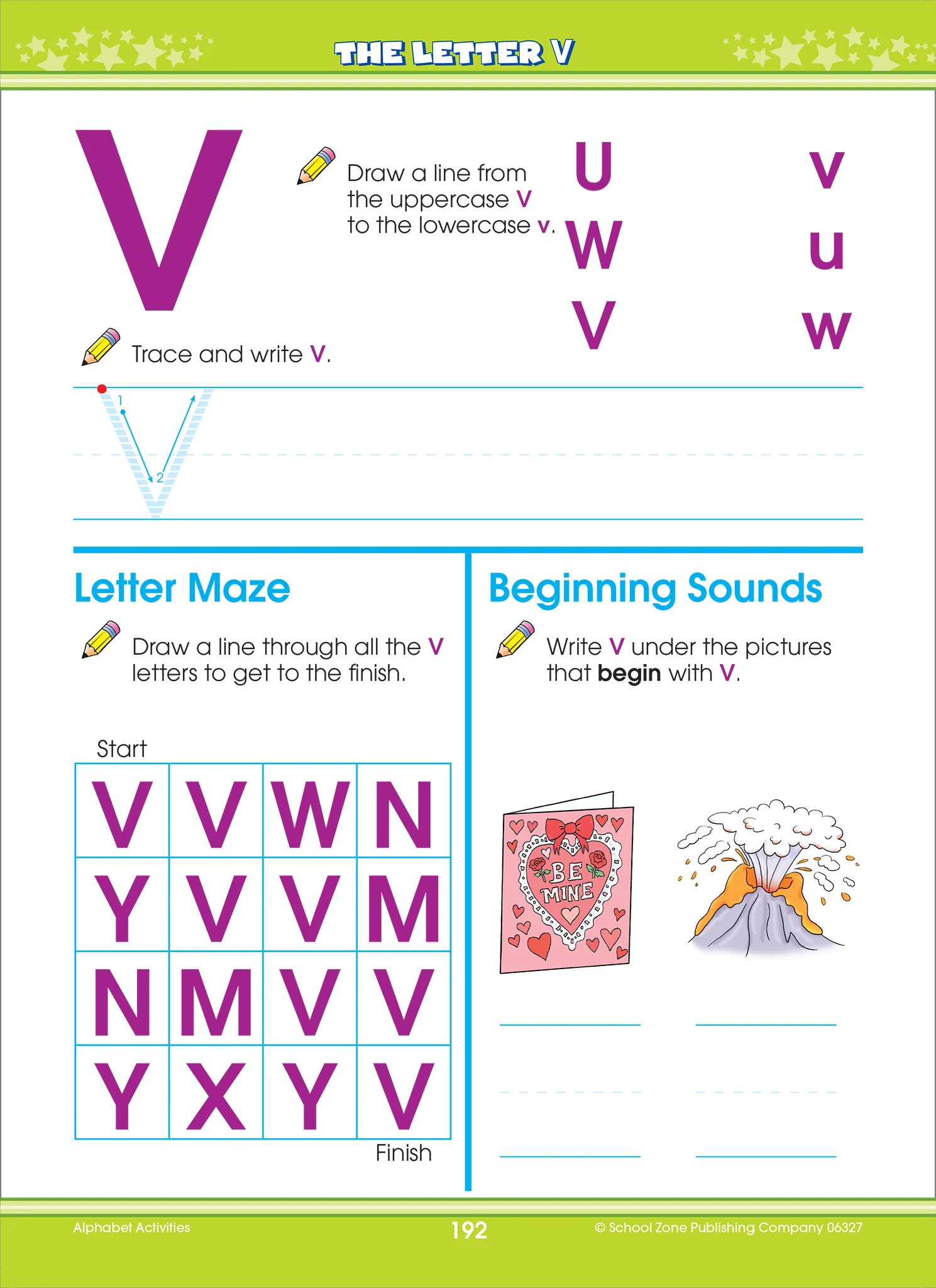 Welcome preschoolers to the wonderful world of letters and the words they can make! With 320 perforated pages that can be torn out for individual worksheets, this Big Alphabet Workbook is packed with fun learning activities for preschoolers. Tracing letters, for example, is an essential pre-writing step that moves kids toward recognizing and printing both uppercase and lowercase letters; putting the alphabet in order and classifying sounds gets them ready to learn to read; and completing colorful word-to-object lessons reinforce the idea that letters and words have meanings. Critter characters such as Alex and Annie Alligator make great guides. Adorable rhymes develop language fluency: “K was a koala who wanted to fly. He made wings out of leaves and flew into the sky.” Get preschoolers ready for kindergarten success!