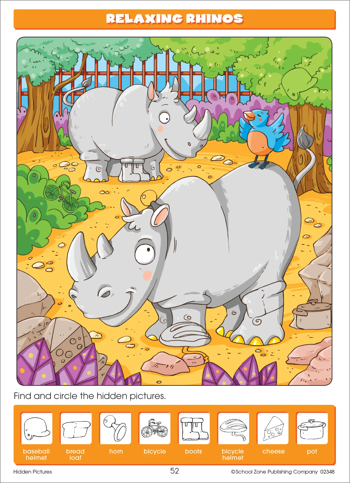 Cowabunga! Can you find the cat, the candle, the carrot, the chicken and other ācās in the Cowabunga Island scene? Thereās a hidden picture for each letter of the alphabet so that kids can practice and reinforce beginning letter sounds. And thatās not all. After the alphabet, there are more pages for kids to develop their visual sleuthing, eye-hand coordination, counting, and object identification skills. From the Pumpkin Patch to the Campfire themes, kids will search for word pictures hidden on each page of this delightfully illustrated, fun-filled workbook. School Zone's Activity ZoneĀ® books are a great way to keep kids' perceptual skills sharp all year 'round!