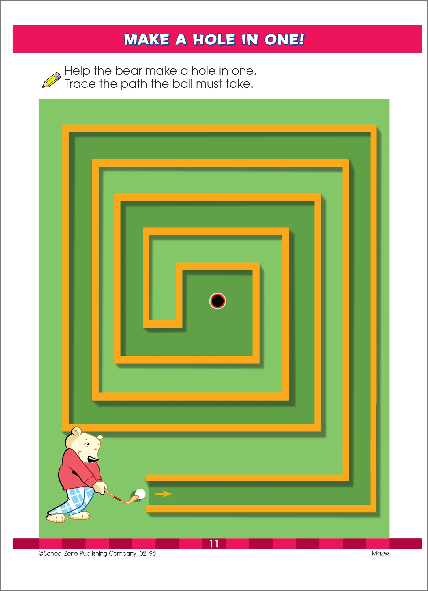 Mazes create a path of logic and imagination! This 32-page workbook from the Activity Zone® series supplies imaginative mazes for your child to solve. Wide paths and colorful illustrations make these mazes perfect for your young learner! Combining objects and places that children recognize, and those that they don't, helps reinforce and expand their knowledge base. Watch eager hands and eyes navigate through hockey-playing penguins, cuckoo clocks and the Great Sphinx. Plus, mazes go beyond fun—they help develop logic, creativity, problem-solving and more. The slim size is great for packing into totes, backpacks and luggage.
